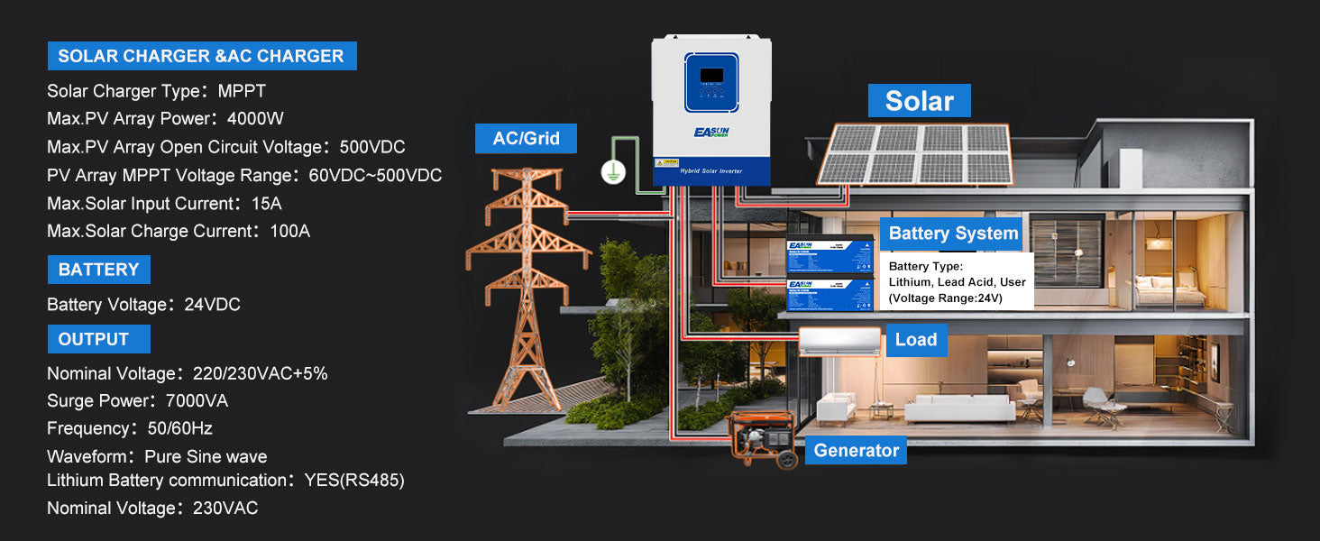 EASUN POWER 4000W pure sine wave inverter solar charge controller with Wi-Fi